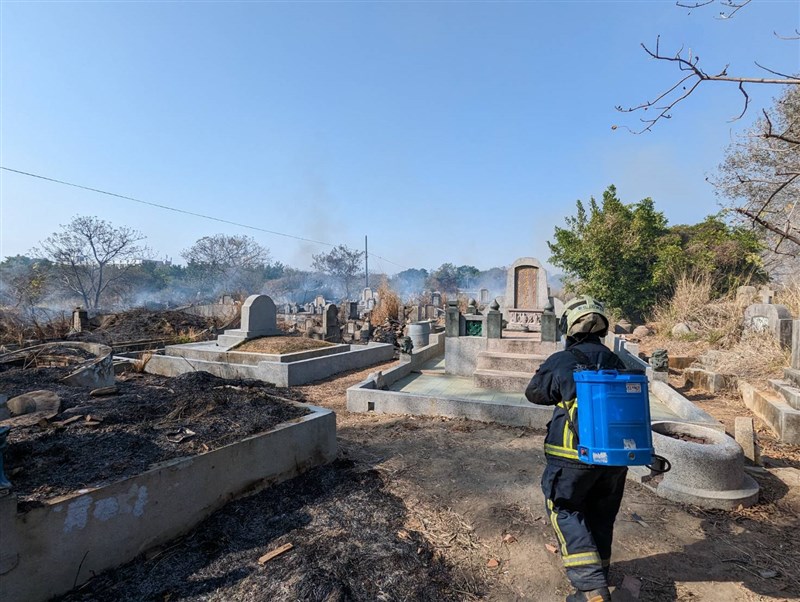 部分民眾利用228連假提早掃墓,彰化縣今天已有10件公墓雜草火警。圖/彰化消防局提供