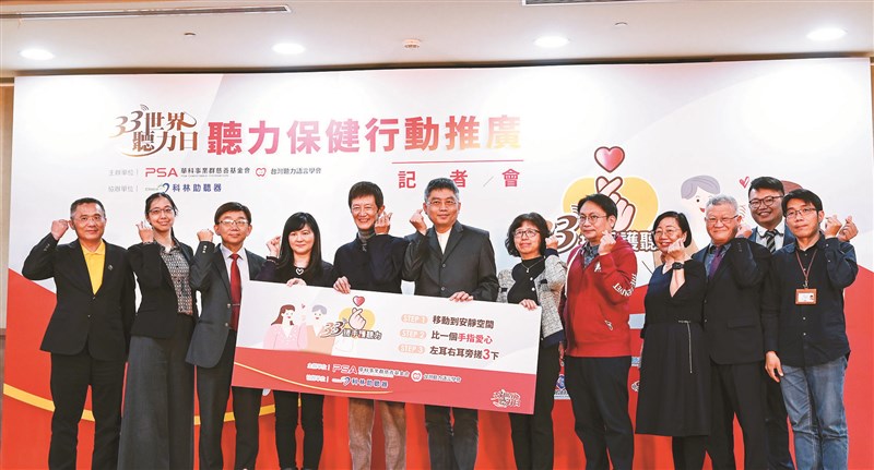 「世界聽力日」華科基金會與聽語學會昨邀請產官學各界專家,呼籲搓手護聽力。 圖/黃啟銘