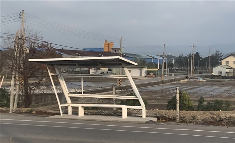 位在龍德家商、台1線北上車道旁的這座公車站亭,莫名毀損向左傾斜,民眾紛紛在LINE「苑裡作伙行」群組留言,有人打趣說「像似閃到腰,歪了!」有人直覺說「不像是風吹的,應是遭車吻肇逃」。