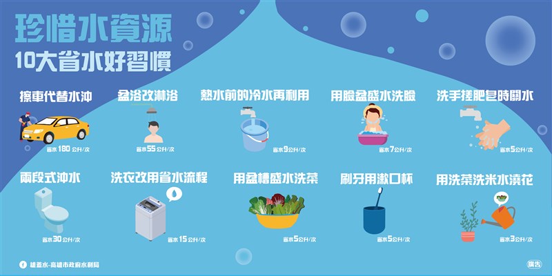 水情轉黃燈 陳其邁:朝4月底穩定供水目標努力 王淑芬 |2023.03.02 語音朗讀 784觀看次 字級 大 中 小 高雄市水情吃緊,市府採「多元供水」,允朝4月底穩定供水的目標努力。圖/高雄市水利局提供 【記者王淑芬高雄報導】南部持續乾旱不雨,水情吃緊,高雄市水情燈號將自3月8日轉為夜間減壓供水的「黃燈」。市長陳其邁今天指出,高雄市採「多元供水」方式,加上夜間減壓可節省水資源以利調度,將會朝4月底穩定供水的目標努力。南部久旱不雨、高屏溪的川流量也節節下降,高雄市的供水吃緊,所幸市府超前部署並開挖水井,用「多元供水」因應旱季的水源調度;不過面對30年水情來最嚴峻的挑戰,中央公布高雄市自3月8日起水情燈號轉為夜間減壓的「黃燈」,以節約用水。陳其邁今天出席市政行程針對水情燈號調為黃燈表示,雖然乾旱未雨、高屏溪川流量下降,但高雄市多元供水方式,所以水資源供應在一定可控制的風險裡。「夜間減壓」供水,每天可以節省約8萬噸的水資源做為備用水,以支應3、4月的水源調度。陳其邁強調,估計到4月底的供水無虞,市府會朝穩定供水的目標努力,並籲民眾配合節約用水。水利局長蔡長展指出,高雄市每天供水量約148萬噸,水利局規畫取水來自高屏溪攔河堰45萬噸、高屏溪伏流水及地下水40萬噸、62口抗旱水井供應13.6萬噸、11口大泉淨水場抗旱水井供應4.7萬噸、50口高屏溪兩岸抗旱水井供應13.2萬噸、鳳山淨水廠供應22萬噸、阿公店水庫供應2萬噸、鳳山及臨海水資源中心再生水供應7.8萬噸等。圖/高雄市水利局提供他表示,水情轉黃燈夜間減壓供水,估計每天可以省下約8萬噸的水量,這些餘裕水資源將做備援,支應3、4月的水情調度。水利局也將加強節水宣導,包括洗澡、洗菜、洗車、澆花等生活用水的節水撇步,呼籲民眾節水共體時艱圖/高雄市水利局提供 前一篇文章 清明連假北返踴躍 高鐵再開加班車3日零時訂票 下一篇文章 北市生育獎勵金加碼 首胎4萬元擬兒童節公布後實施 熱門新聞 01土方之亂推高成本 房價漲壓浮現2026.02.0202【遨遊藝事】巴黎 黛瑪兄弟茶館(Dammann Frères)2026.02.0603向前有路 光明在望2026.02.050410年前震倒115死 台南維冠改建防震7級大樓2026.02.0605菜市場變書房 攤商兒放學安心讀2026.02.020630冊佛教徒必讀經典 台北書展亮相2026.02.0407長照3.0 重點聚焦醫療結合長照2026.02.0408極樂寺彩繪燈籠 三好理念廣傳校園2026.02.0409佛教藝文本土化 昆士蘭美術館團隊訪中天寺2026.02.0510立春養生疏肝理氣 飲食調養少酸多甘2026.02.04 訂閱電子報 台北市 天氣預報 台灣一週天氣預報 相關報導 蘭潭景區升級 大白熊迎春基隆20億元 購123輛電動公車3D彩繪 新湖漁港活起來10年前震倒115死 台南維冠改建防震7級大樓高齡保駕照 急開白內障手術惹議陽明山花季揭幕 作者其他文章護送身障者過馬路 國中生獲表揚高雄跨齡共學 解開大海奧祕佛光山春節平安燈 點亮馬年新希望寵物平安符袋 守護毛孩數位繪圖 學童想像力百馬奔騰畫出原鄉風情