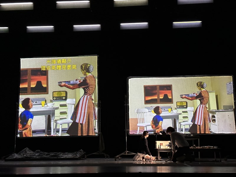 《山貌》演出中將以三個移動式巨型投影幕,區隔出多重空間的錯置效果。圖/記者曹麗蕙
