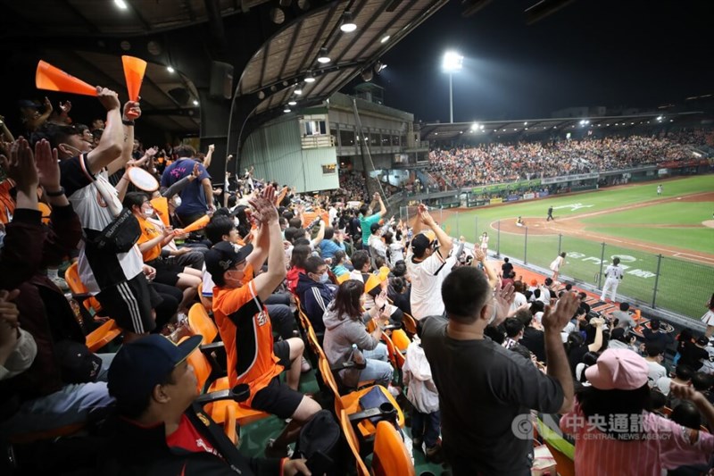 立委希望將「動滋券」常態化,教育部體育署透露,預計3月底會公布辦法。圖為中華職棒32年開幕戰,球迷在看台賣力為支持球隊加油打氣。圖/中央社