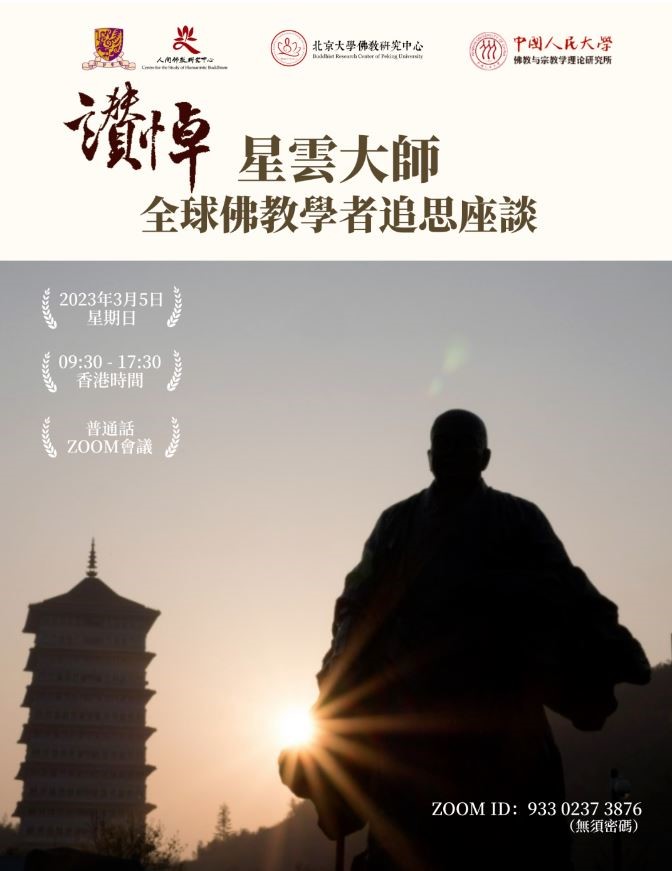 【記者蔡觀秀台北報導】感念一代宗師佛光山開山星雲大師對於現代佛教的發展貢獻及影響力,香港中文大學之人間佛教研究中心將於3月5日主辦「讚悼 星雲大師全球佛教學者追思座談」,共有5場不同的座談主題,包括星雲大師弘道五洲及對漢傳佛教的歷史貢獻,以及討論大師所關注之大藏經,並緬懷與星雲大師的緣分等議題。
