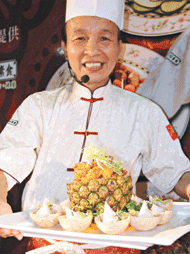 除了形形色色的有機素食產品外,素博會另一個備受矚目的重頭戲,就是五星級飯店大廚師所帶來的「拿手素菜料理示範」。昨天上午率先登場的是國內素食名廚洪銀龍精美素食料理示範,下午則由大家所熟知的阿基師(鄭衍基)一顯身手。只見大廚師巧手運作下,沒多久一道道色、香、味俱全的素食料理就展現在眼前,讓現場民眾看了都忍不住食指大動,口水欲滴,紛紛向大廚師討教秘訣。
