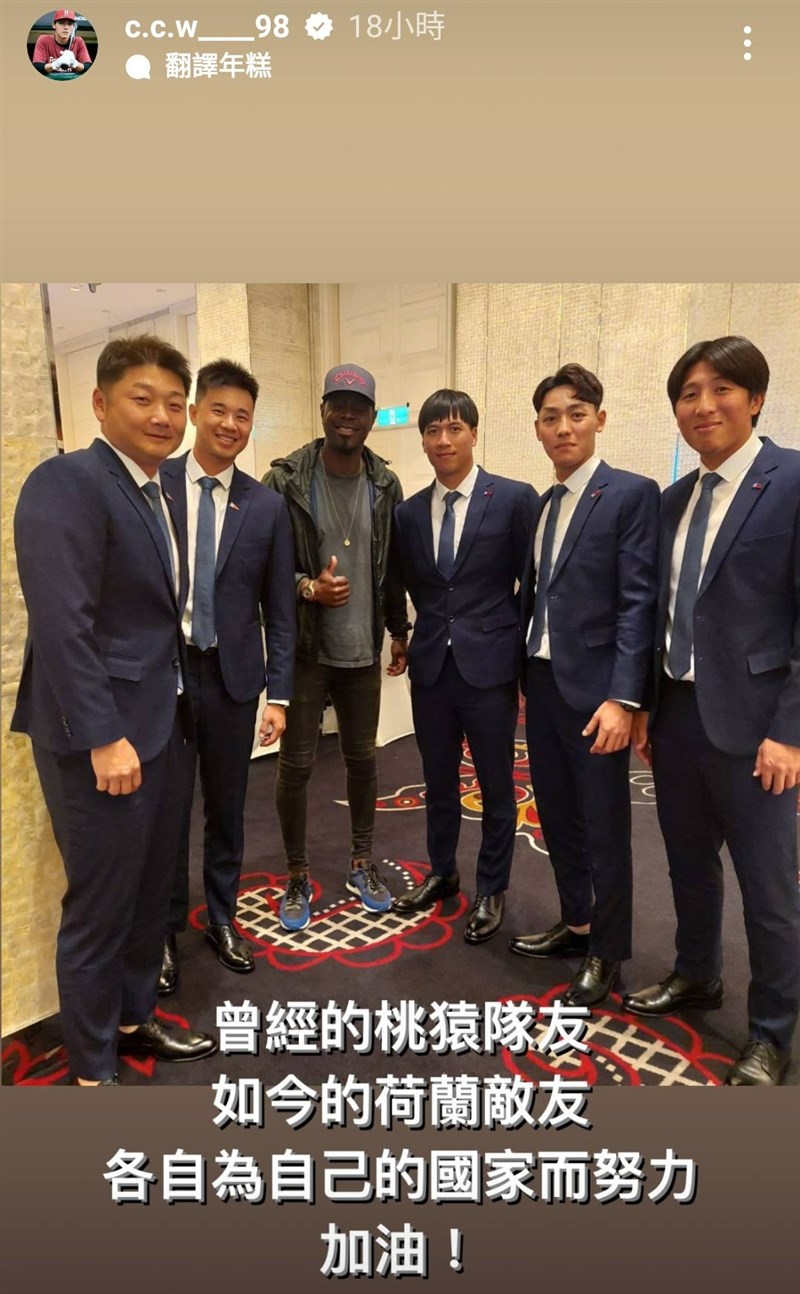 柏納帝那2019年來台效力,出賽24場就被釋出,留下2成56打擊率、2轟成績,昨天歡迎晚宴中,他特別跑去跟這次入選中華隊的猿隊球員合照,直說自己很開心看到熟悉的隊友。