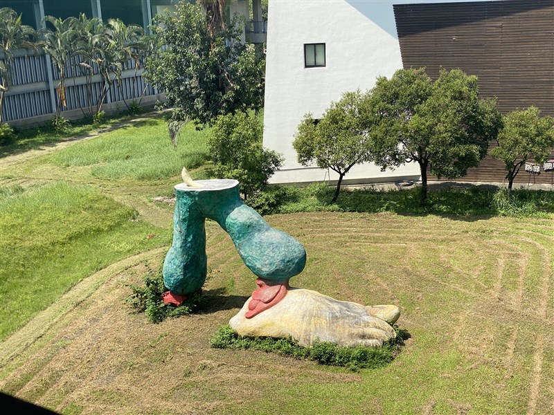 屏北高中校園環境,公共藝術作品巨足。圖/劉星君/