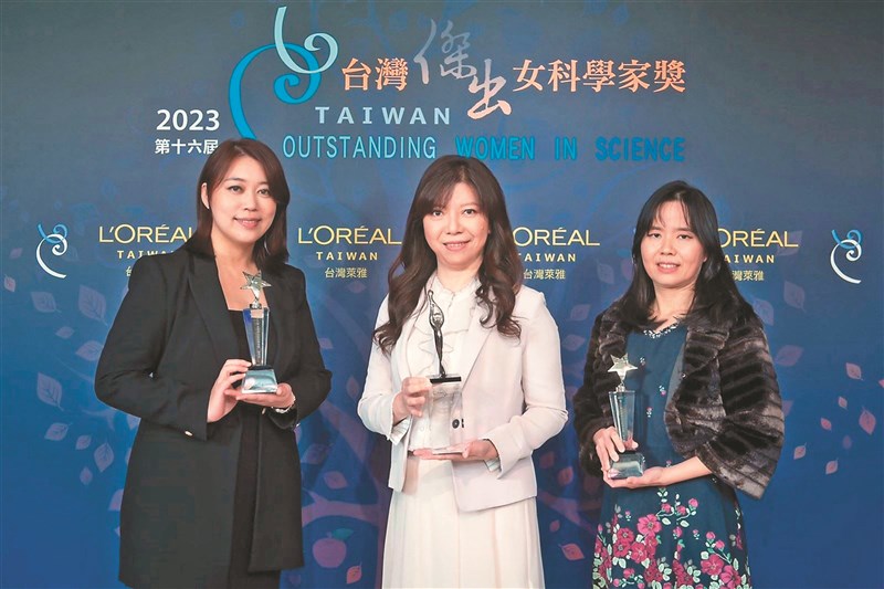 第十六屆「台灣傑出女科學家獎」得主。由左至右為新秀獎胡璧合、傑出獎陳玉如、新秀獎林俐暉。圖/吳健雄學術基金會提供