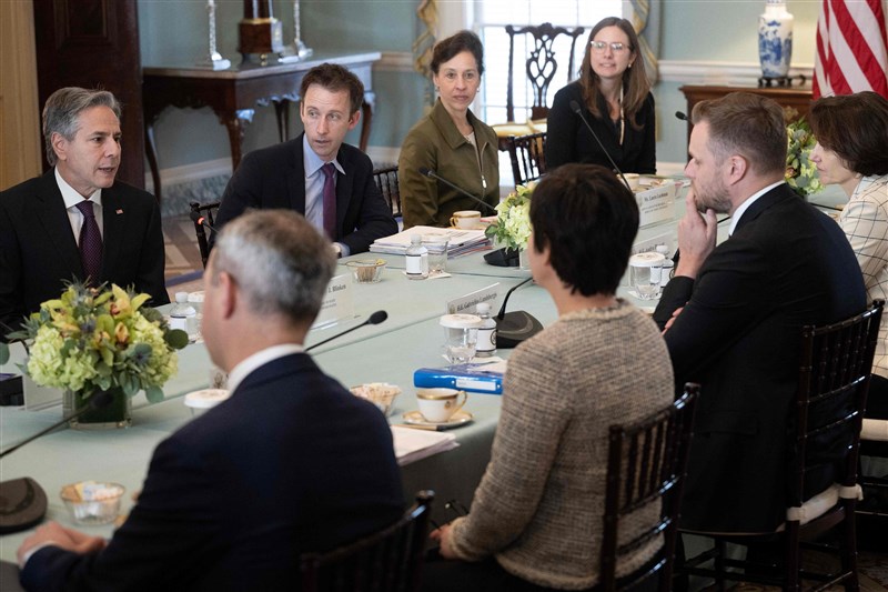美國國務卿布林肯(Antony Blinken)6日下午在國務院接待立陶宛外長藍斯柏吉斯(Gabrielius Landsbergis);立陶宛因2021年同意與台灣互相設代表處遭到中國經濟脅迫,加上俄烏戰爭延燒,兩人過去2年來密集會晤,6日是第3次。