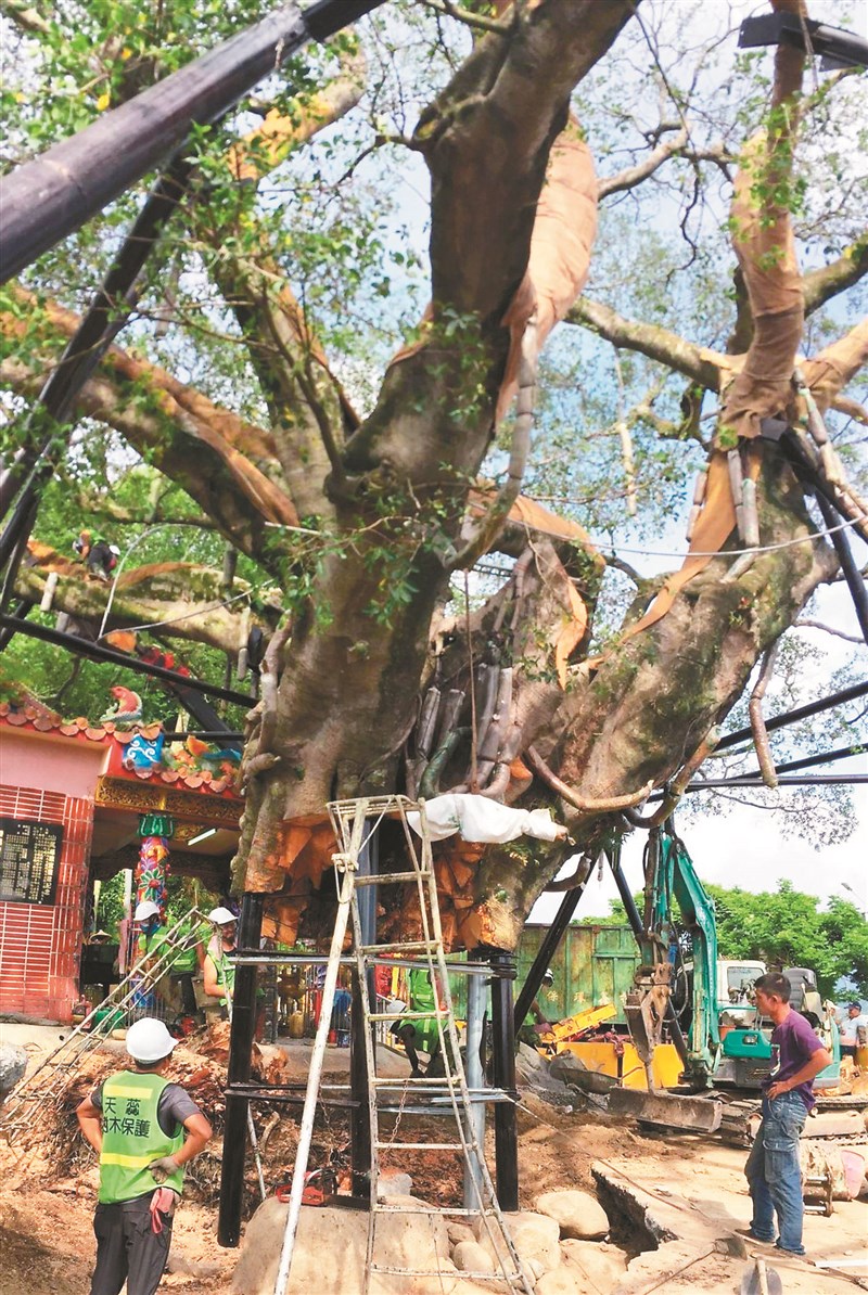 搶救老樹 永續土地記憶 |2023.03.08 語音朗讀 1528觀看次 字級 大 中 小 卓蘭鎮上新里百年老榕幾年前確診褐根病,目前已逐漸恢復健康。圖/胡蓬生卓蘭鎮新里百年老榕確診褐根病,因切除樹身下方樹幹,以支架和培育氣生根為老樹「續命」,看起來像浮在空中。圖/苗栗縣政府提供 【本報苗栗訊】苗栗縣有不少老樹或珍貴樹木,與土地、居民的生命記憶緊密連結,全縣迄今由苗栗縣政府列管的受保護樹木共99棵;老樹面臨病蟲害、天災等挑戰,縣府與民眾展開搶救大作戰,一些案例也展現尊重生命和護樹、愛樹的保育精神。卓蘭鎮上新里的百年老榕幾年前確診褐根病,縣府及相關單位斥資百萬元經費搶救,過程中因切除樹身下方染病樹幹,以金屬支架和培育氣生根為老樹「續命」,讓老樹有如「飄浮在空中」;完成救治作業後,持續監控老樹生長情形,最近比對空拍相片,發現老榕恢復活力,枝葉再次呈現繁茂的榮景。支架、輸液顧老榕 像住加護病房這株老榕位於上新里苗58鄉道山尾伯公廟旁,樹齡估計超過220年,2019年證實感染褐根病,為搶救這株百年老榕,專家鋸除主幹下方1公尺多的染病部位,老榕的根系、土壤也全部挖除,再換上沒有褐根菌的新土;老榕「動手術」前,先以多根金屬支架,撐住老樹上半部枝幹及樹冠,因主幹下半部被鋸除且移走土壤,使老榕一度呈現上半身「懸空」的場景,因而被稱為「飄浮空中的老樹」。卓蘭鎮新里百年老榕確診褐根病,因切除樹身下方樹幹,以支架和培育氣生根為老樹「續命」,看起來像浮在空中。圖/苗栗縣政府提供縣府農業處生態保育科指出,榕樹的主幹和枝幹上有「氣生根」,可吸收空氣中的水分,如垂落接觸地面,還能加速生長且變粗,成為具支撐力量的「支持根」;專家在主幹、枝幹劃開多處傷口,並包覆、提供「輸液」,增加氣生根的生長數量,周邊還設置自動灑水裝置,老榕如同在加護病房中接受密切照顧。老樹下方更換並填滿土壤後,原本懸空部位也被包覆起來,枝幹的2、30支氣生根透過導根作業與地面接壤,未來將成為支持根。農業處生態保育科指出,第一階段搶救作業是設法將氣生根變為支持根,須持續維護與監測,2021年3月起,農業處以空拍機對老榕進行病害檢查與枝葉量監測,比對照片後發現老樹逐漸恢復活力;這次搶救過程將納入保育研習推廣課程,讓老樹不單是陪伴當地民眾,更成為苗栗搶救褐根病樹木第一個活教材。油杉培育「分身」 刺桐樹屋伴學童苗栗市恭敬路接近聯合大學好漢坡的樹林中,有株編號42號的受保護樹木「台灣油杉」,屬於台灣的珍稀樹種,近日不敵褐根病的侵擾,下半部樹身染病。去年底專家勘察後發現,油杉下半部已染病嚴重,但上半部的頂枝仍生機盎然,決定截取油杉的多株頂枝,送往苗栗區農業改良場以扦插保種方式,培育小樹苗,將在各處重新復育,期盼老油杉透過「分身」,重新成長為一株株大樹。後龍鎮福寧宮前方2株樹齡近百年的老榕樹,前年出現枯黃、樹幹中空等病況,護樹義工彭鈺明花了2個月搶救,分別以換土、切除、移植、嫁接、給氧的「手術」,還為其中一株老榕輸液「吊點滴」。雖然經過搶救,但有的樹木還是無法存活下來,例如:西湖國小有2株百年刺桐,多年前發現病害,其中1株枯死,校方在老刺桐上搭蓋樹屋,變成校園植物導覽中心;公館國中門前的雪松前幾年出現病害,經救治後,還是未能存活,校方將樹材製成木桌、木椅,繼續陪伴師生。 前一篇文章 電價漲聲響起 產業、民生用電恐雙漲 下一篇文章 中南部冬雨60年最少 百年大旱恐重演 熱門新聞 01補充纖維、鈣、鎂、鉀 預防多種疾病風險2025.11.1102佛光會參與COP30 推廣環保與心保2025.11.1303法華禪寺皈依典禮 佛子開啟修行旅程2025.11.1304習近平會西班牙國王 盼成戰略夥伴2025.11.1305印尼佛教大學、佛光山叢林學院 簽MOU2025.11.1206璀璨燈光 映照千年運河2025.11.1307【相守一輩子】 學習向另一半求助2025.11.1308健力世錦賽 中華隊再奪3金2025.11.1309迎銅鑼杭菊季2025.11.1310【遊藝筆記】 天涯海角一坡翁2025.11.11 訂閱電子報 台北市 天氣預報 台灣一週天氣預報 相關報導 難民營走向奧運 拳擊女孩守護教育南韓晶片銷美 關稅條件不輸台灣43天史上最久停擺結束 美聯邦政府重啟馬太鞍溪新堰塞湖溢流 再淹明利村油氣需求恐續增至2050年 加劇暖化鳳凰襲台 蘇澳土石流、泥灌明利村