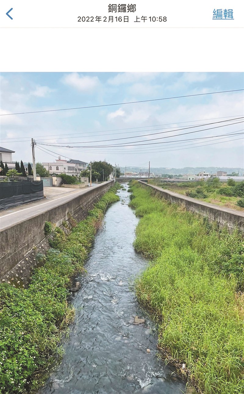 苗栗縣公館鄉穿龍圳的下游東河圳乾枯見底,於去年的水情(圖)完全兩樣。圖/徐裕逢提供