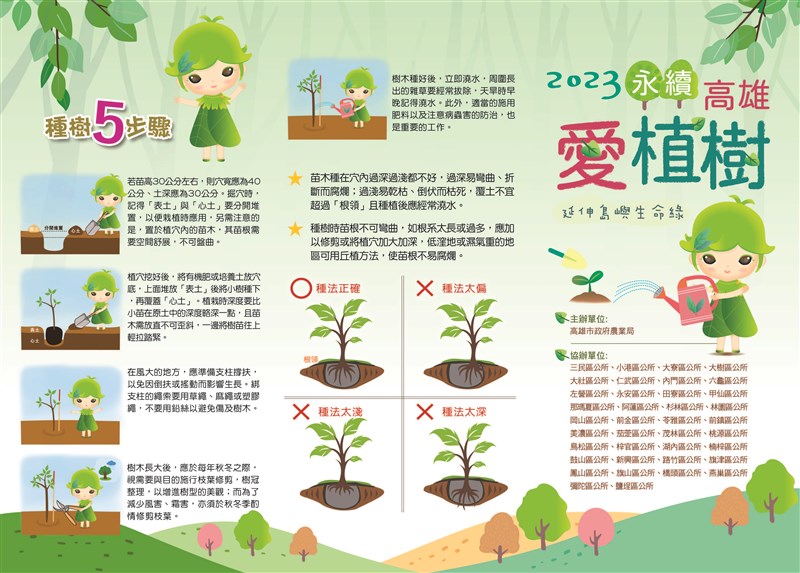 農業局指出,隨著全球氣候變遷,溫室效應加劇,造成許多生態危機,鼓勵民眾植樹,讓樹木減緩溫室效應,淨化空氣並涵養土地,一起努力讓地球生態環境永續。