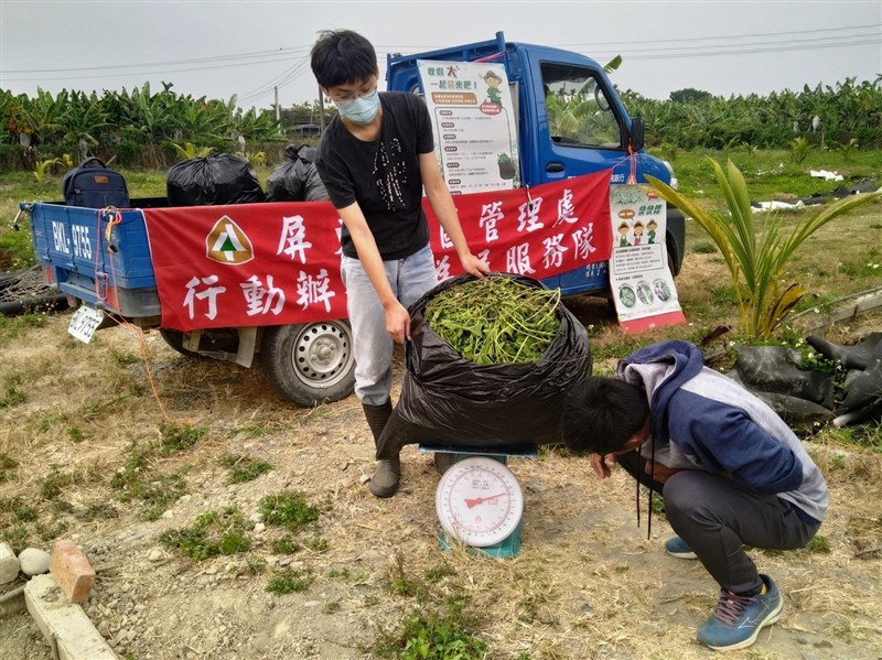 馬姓青農連續2周到屏東林區管理處潮州工作站收購作業,原來是剛返鄉要種植園藝材料黃梔,租用4分左右農地小花蔓澤蘭危害嚴重,需先清除後才能種植,交通工具每次僅能戴運2到3包(約30公斤),因此工作站立即啟動為民服務措施,前往萬巒鄉附近農地設立行動辦公室臨時收購點,以利農民除蔓後就近完成收購,當日收購達187公斤。