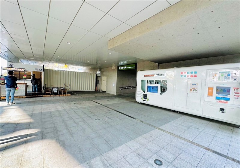 中捷公司近日引進白色貨櫃屋販售鮮果冰棒,與同色系造型簡約的「捷運自助借還書站」相呼應,不僅提高車站服務機能,也打造松竹站成為綠空廊道最美休息區。