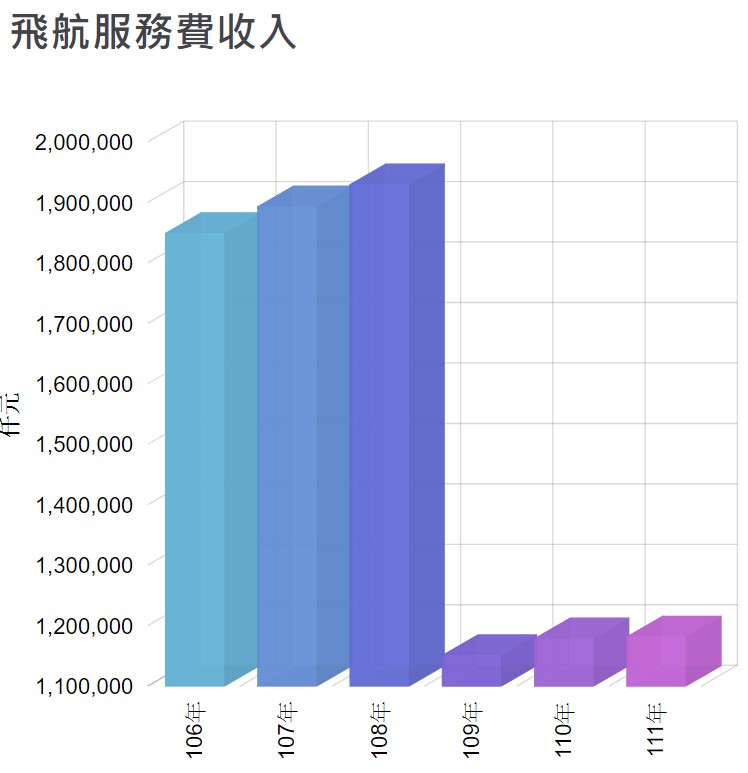 根據飛航服務總台官網公布的資訊,疫情前,飛航服務總台的收入都遠高於支出,106年至108年,支出大約是新台幣23億元左右,106年收入有39.2億元、107年達41.6億元、108年更增至43.9億元。