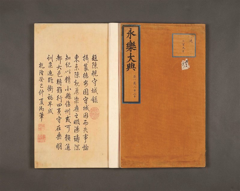 在「明清宮廷藏書」特展中,能看到列為國寶、明嘉靖隆慶年間內府朱絲欄重寫本《永樂大典》。圖/故宮提供