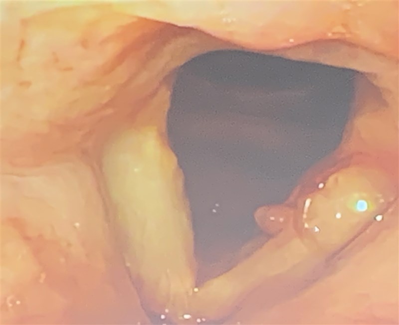潘絃融表示,去年中發現難以發聲,一度以為感冒、確診新冠肺炎,經成藥、診所治療未見改善,到高醫才被檢查出聲帶長繭,大大的瘜肉影響他的發聲。一開始很擔心全身麻醉的傳統手術,還有術後結痂的問題,所幸醫療團隊建議採精準類固醇聲帶注射治療方式,很快就在門診進行並配合語言治療,終於看到瘜肉慢慢消失了。