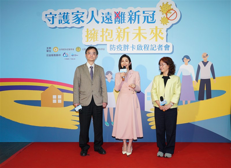 台灣感染症醫學會理事長王復德(左)、衛教大使王宇婕(中)、台灣感染管制學會理事長陳宜君(右),今在記者會上同台呼籲,民眾不可輕忽「長新冠」的危害。圖/記者陳玲芳