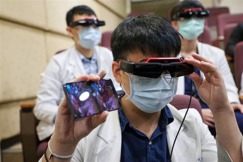 他以正在進行的婦產科子宮肌瘤手術為例,一般觀摩教學僅能看到大螢幕上的平面影像,但戴上AR眼鏡後,可以看到器官就在眼前,以及手術刀「劃過」的立體景象,就好像手邊正在進行手術一樣。甚至,透過「視訊協作平台」也能標記手術重點部位,方便學習。現場醫學生直呼「距離感非常清楚,可以充分掌握」。