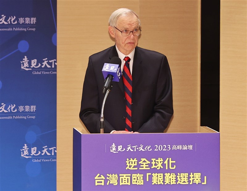 遠見天下文化舉行2023高峰論壇「逆全球化台灣面臨艱難選擇」邀請到美國在臺協會前理事主席卜睿哲,針對台海局勢做出分析。圖/曾原信