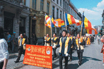 比利時佛光山、安特衛普協會在安市唐人街康年廣場舉行浴佛法會及園遊會,多個團體演出功夫、舞蹈、中樂及歌曲等節目慶賀佛誕,與近千民眾同樂。佛光會員和義工穿著各國不同的民族服裝,以香、花、燈、塗、果、食等六供養獻供團及比利時各佛教團體參加遊行,途中引來圍觀者,一片熱鬧。(心耐)(人間社記者歐陽志遠攝)