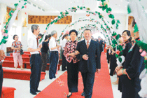 【人間社記者賴炯福員林報導】五十對結縭三十年以上菩提眷屬,十一日在員林講堂再度攜手踏上紅地毯,三百位觀禮民眾與家屬共同為菩提眷屬慶賀。