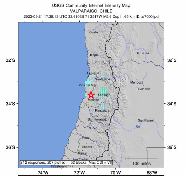 智利瀕臨太平洋地區瓦巴萊索(Valparaiso)遭到規模5.6強震襲擊。圖/取自美國地質調查所(USGS)網站