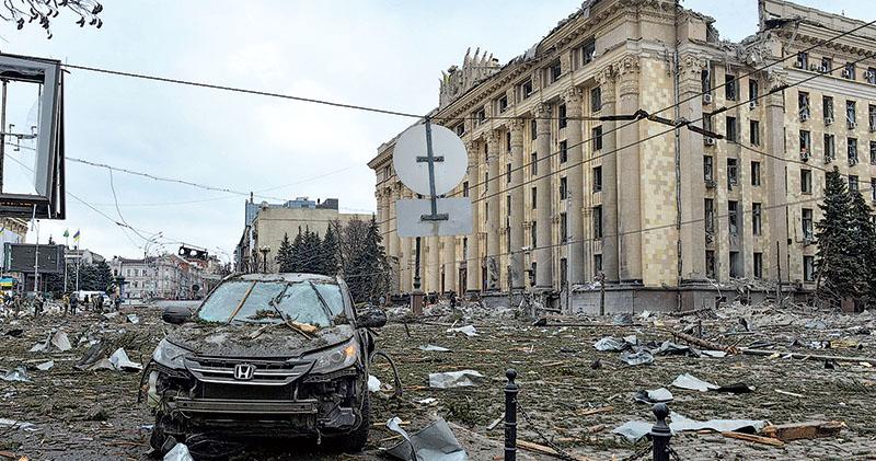 烏克蘭第二大城市哈爾科夫市中心廣場。圖/法新社