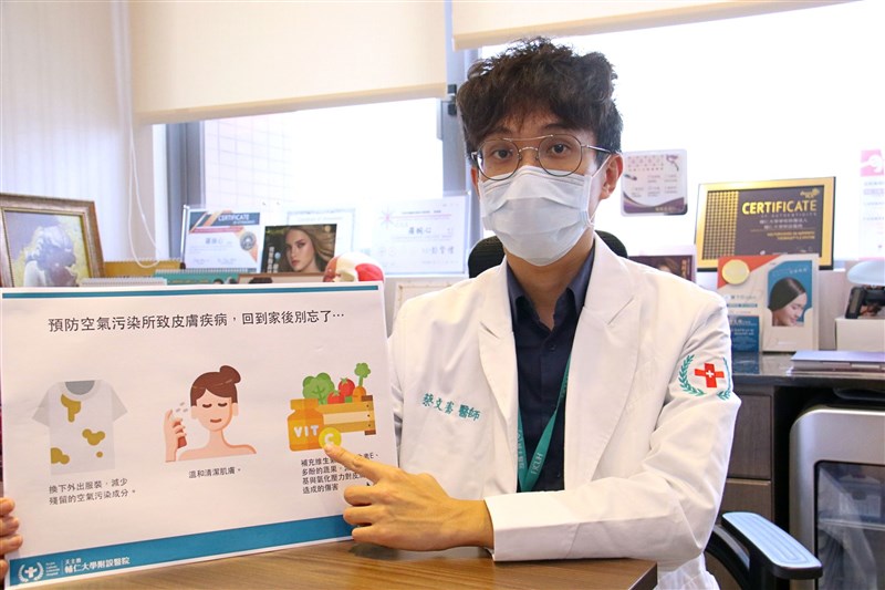 【記者陳玲芳台北報導】冬去春來,民眾常趁著天氣變暖之際外出活動,但在空氣品質較差的季節外出,可要格外小心。輔大醫院皮膚科主治醫師蔡文騫提醒,空氣中的汙染物,會加劇皮膚老化,造成多種常見皮膚疾病惡化;此外,兒童與孕婦,若長期曝露在空氣汙染中,則有可能提高孩童、新生兒異位性皮膚炎發病的風險。