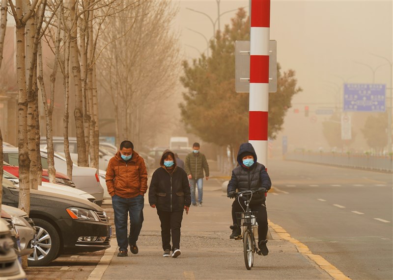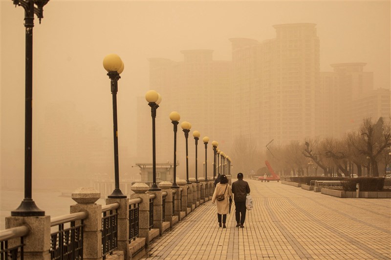 大陸國家林草局表示,3月以來中國大陸共發生4次沙塵天氣,多於往年,15省分約5.6億人受影響。圖/法新社