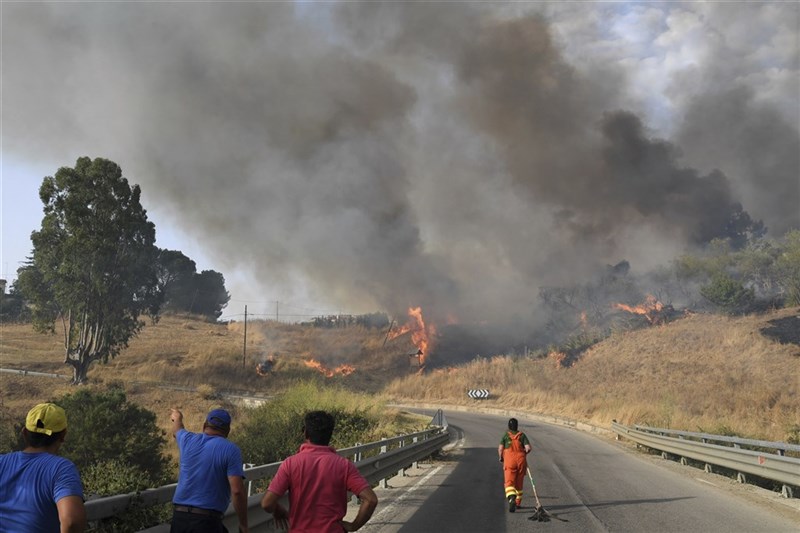 炎熱歐洲夏天,義大利西西里島馬多涅山脈附近的野火。圖/美聯社