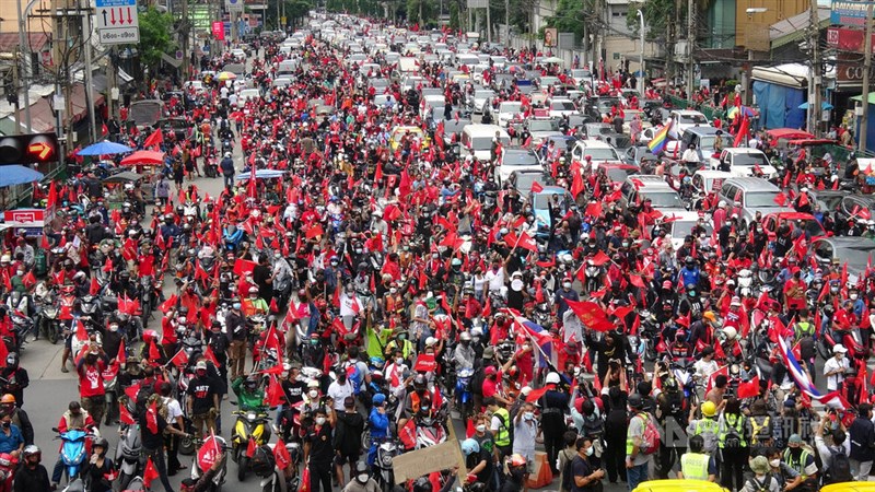泰國民眾上街頭遊行的場景。圖/中央社