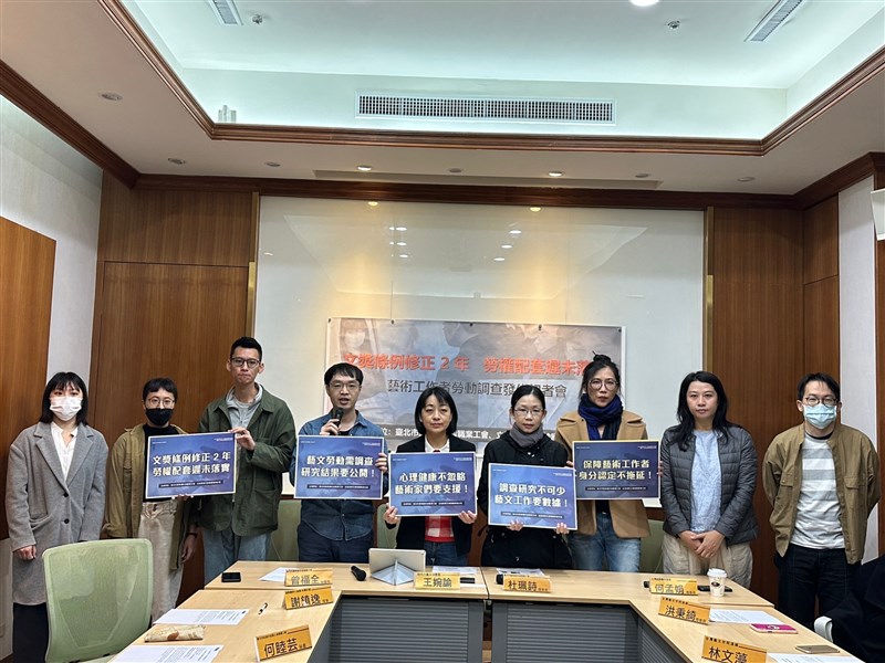 藝創工會偕同台灣藝文空間連線、台灣視覺藝術協會、國際劇評人協會(台灣分會)、台北市紀錄片從業人員職業工會,以及立委王婉諭共同召開記者會,除了公布調查結果,並就改善藝術工作條件,向文化部提出3項訴求,包括公布身分認定機制、重視職業心理健康、定期辦理研究調查等。