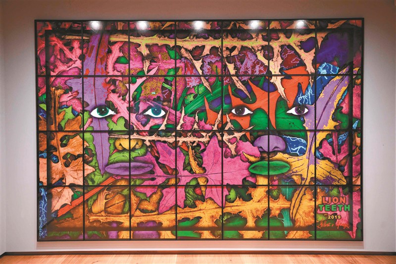 英國知名雙人藝術組合「吉爾伯特和喬治」(Gilbert & George),兩人座右銘:「Art for all」(藝術為了一切大眾),創作目標不是要震驚全世界,而是要使世界上正在發生的一切可見。兩人2019年合力創作的〈獅牙〉(Lion's Teeth),24日在倫敦「吉爾伯特與喬治中心」揭幕時,開放媒體拍照。圖/法新社
