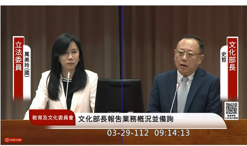 文化部6月6日將透過專屬APP,針對18-21歲青年發放成年禮金。立委萬美玲(左)質詢時擔心「若是經濟弱勢青年,沒有智慧型手機如何領取支付?」史哲回應,屆時將會推出紙本的QR CODE,或用簡訊和email、傳真等配套方式處理。圖/取自國會頻道