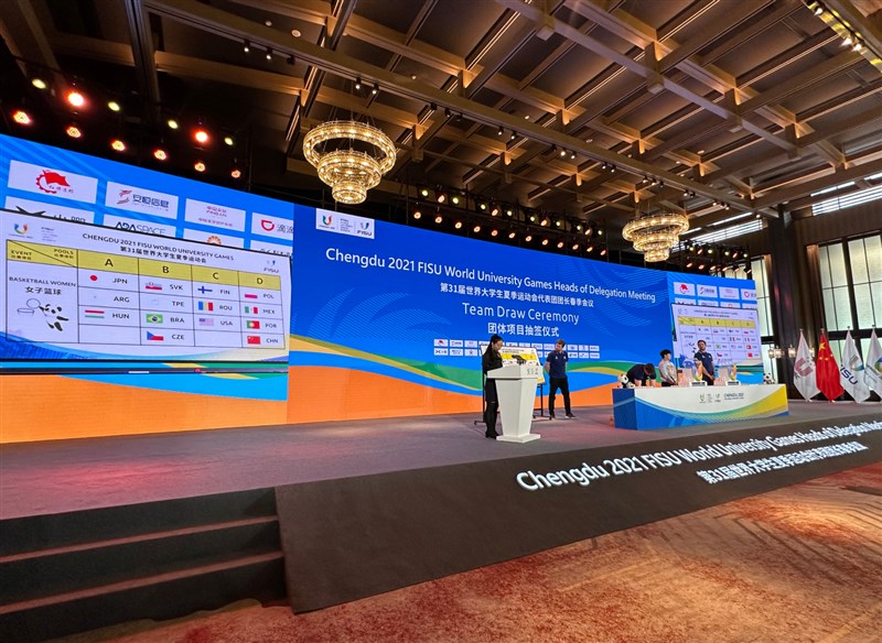成都世大運今天在東安湖舉行團體運動抽籤。圖/大專體育總會提供