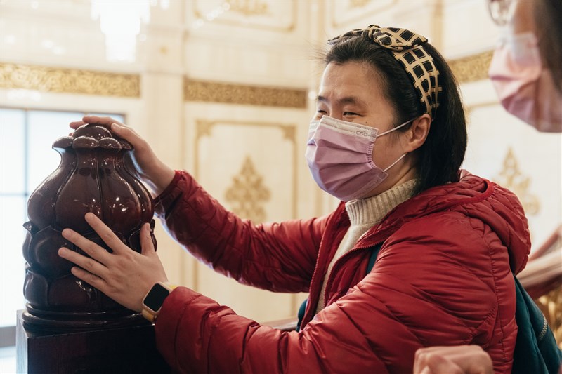 兩廳院推出全新「國家音樂廳觸覺導覽」,帶領視障朋友透過實際觸摸,感受部分空間材質。圖/兩廳院提供