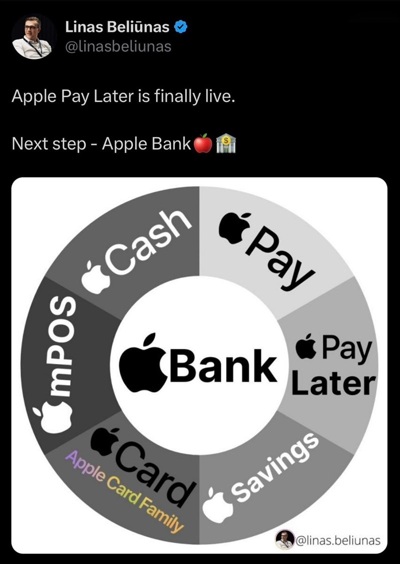 Apple Pay Later上線 「蘋果銀行」將席捲全世界 |2023.03.31 語音朗讀 1155觀看次 字級 大 中 小 延遲了9個月,蘋果推出先買後付服務「Apple Pay Later 」。圖/資料照片 【記者蔡觀秀綜合報導】延遲了9個月,蘋果(APPLE)推出先買後付服務「Apple Pay Later 」,初步以美國市場開放特定使用者搶先使用。此舉,象徵科技業進軍金融服務最具歷史性的一大步,因為蘋果將繞過銀行,直接向消費者提供貸款,這一個巨大的步驟,即使蘋果沒有銀行牌照,也將成為世界上最大的銀行。蘋果的先買後付服務,將允許美國iPhone和Mac用戶6周內將付款分成四期進行,無需支付額外的利息,用戶可以透過該服務申請50美元至1000美元的貸款額度,無論是實體商家或者應用程式內的消費都可以分期付款。蘋果先買後付跨足金融業 不讓銀行分杯羹Apple Pay Later上線,下一步Apple Bank。圖/twitter@Linas Beliunas過去,蘋果一直是依靠合作夥伴處理金融相關業務,例如2019年登場的蘋果信用卡Apple Card,就是蘋果與高盛合作推出,高盛負責評估用戶信用及負責發卡相關流程。但蘋果沒有直接發放支付憑證的許可證,高盛也允許蘋果使用萬事達卡的網絡來運行Apple Pay Later。不過,蘋果並未使用高盛或其他銀行做信貸決策、發放貸款,而是通過其全資子公司Apple Financing LLC向消費者提供貸款。在於內部徵信部分;據了解,蘋果內部處理提供該服務的徵信檢查,是由2022年3月收購的一家英國徵信機構Credit Kudos所負責,將使用開放銀行(Open Banking)技術服務來提供經過調查的信用評分。另外,蘋果還與Green Dot、CoreCard等金融科技合作,來處理旗下各項金融服務的金流,包括P2P支付及Apple Cash帳戶是由Green Dot Bank提供服務,而CoreCard則是與高盛合作,協助處理Apple Card的信用卡交易。加上最近推出的Savings帳戶,Apple Pay Later是Apple Financing帝國的基石,在萬事俱備下,這家科技巨頭正認真的計畫深入金融服務領域,而,所有這些金融服務領域的服務,都在實際上「沒有銀行」的情況下完成。蘋果端出多樣金融服務 顯示跨入金融領域的濃厚企圖心圖/法新社金融業內人員表示,銀行本質上有龐大的資產負債,大量數據和處理能力,以及分發和許可證或監管監督。但蘋果即使沒有銀行業務,也擁有這一切。雖然Apple Pay Later目前僅先在美國推出,暫時只有部份隨機挑選的用戶會收到邀請,能夠搶先啟用先買後付服務,但未來開放至全世界蘋果的實體商家和所有用戶,蘋果銀行將是全世界最大的銀行。蘋果表示,目前不需要申請銀行牌照,直接透過子公司向客戶提供貸款,可從每筆交易中獲取手續費,並加強公司對數據的掌握,例如購買iPhone的時間或者從蘋果商店購買APP的頻率,來評估客戶的信譽。目前包括亞馬遜、PayPal、Stripe、Shopify 和 Block(前身為 Square)在內的幾家科技公司也向通過其平台銷售的小企業提供融資。然而,除了Klarna和Affirm等專業金融科技公司之外,很少有大型科技公司像蘋果這樣直接向消費者提供一般消費貸款。不怕用戶不繳錢 蘋果手機就是最有效的擔保品圖/twitter@Linas Beliunas蘋果一路積極布局金融服務,並不擔心用戶繳不了錢,因為只要用戶忘了繳Apple Pay Later的費用,用戶在每次解鎖iPhone時,Apple就會收費0.99美元;換句話說,就是你沒繳錢時,就不能用iPhone手機了。從2014年Apple Pay登場以來,蘋果在金融服務的布局已經愈來愈廣大,金融服務不僅商機大,更是幫助蘋果生態系增加黏著度的有力產品。包括金融服務在內的服務業務,目前是蘋果僅次於iPhone的第二大業務,持續維持正成長態勢,截至2023年2月公布的財報中,服務營收約為207.6億美元,較上一年195.1億美元,年增6%。你的就是國家的 阿里巴巴慘遭中國「割韭菜」圖/新華社看好金融服務商機龐大,不只有蘋果,還有幾年前的阿里巴巴。當年阿里巴巴創辦人馬雲對金融的想像,反應在阿里巴巴擁有的5億名使用者身上。因此在2003年,阿里巴巴推出第3方網路支付平台「支付寶」,在2010年,取得小額信貸執照,針對淘寶客戶提供小型貸款業務,2013年6月,阿里巴巴與基金公司合作推出「餘額寶」,正式邁入Fintech領域,藉由支付寶的客戶基礎,希望營造小額放款、理財及保險等三項新業務成為未來公司業務成長的新引擎。2004年成立的支付寶體系是為了在淘寶網交易的買賣雙方提供交易擔保,以促進電商發展。之後支付寶開始擴大服務範圍為其他領域的客戶提供服務,並走出網路朝實體前進,最終滲透到民眾生活中,成為中國大陸網路金融領域中的最大流量平台,其所提供的服務惠及逾10億用戶和逾8000萬店家,其營收占整個集團比重約36%。2015年6月,螞蟻旗下「支付寶」,作為人們生活中不可缺少的「數字錢包」,支付寶的註冊用戶達到3.5億,幾乎是美國PayPal的三倍。在中國內地的支付系統中,支付寶的市場佔有率高達70%,大幅超過傳統支付系統「銀聯」。業務做的風生水起、錢缽滿滿,阿里巴巴旗下的螞蟻金服,本預計在2020年11月將同時在上海A股與香港H股掛牌上市(IPO,initial public offering),但這這市值達350億美元的IPO卻臨時喊卡,除暫緩上市計畫,阿里巴巴集團創辦人馬雲,傳出計畫放棄對螞蟻集團控制權。以一家做電子商務起家的公司,短短幾年陸續增加金融服務,已衝擊原本封閉的中國銀行生態,同一時間騰訊也發展出微信支付,威脅到傳統的銀行業務,而中國的銀行又多是政府持股的國營企業,自然難容於中國政府眼中。現