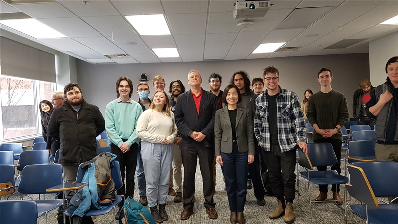 駐多倫多辦事處長陳錦玲應邀以台日關係為題,向加拿大勞瑞爾大學及滑鐵盧大學研修現代日本課程學生發表演說。圖/駐多倫多辦事處提供