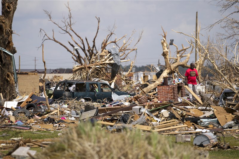 橫掃美國中南部和東部大型風暴系統,造成的死亡人數已上升至21人,另有數十人受傷。圖/美聯社