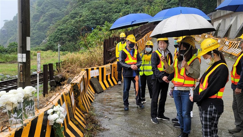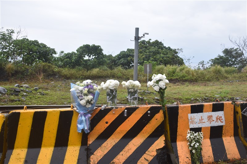 台鐵太魯閣號事故2周年,2日約有20名罹難者家屬到事故現場,獻上白色桔梗花追思。圖/中央社