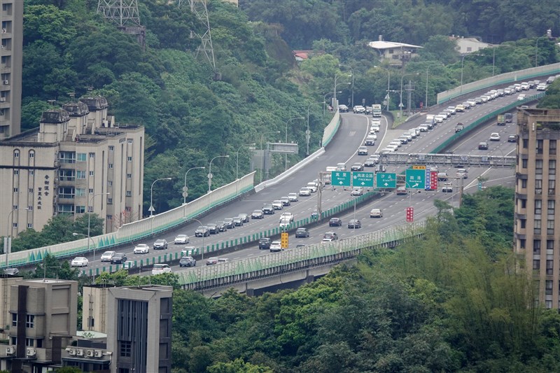 國道5號南港系統交流道,2日依然大排長龍。圖/中央社