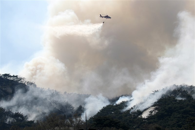 首爾市仁王山昨天中午失火,經過25個小時灌救,火勢終於在今天下午完全撲滅。圖/新華社