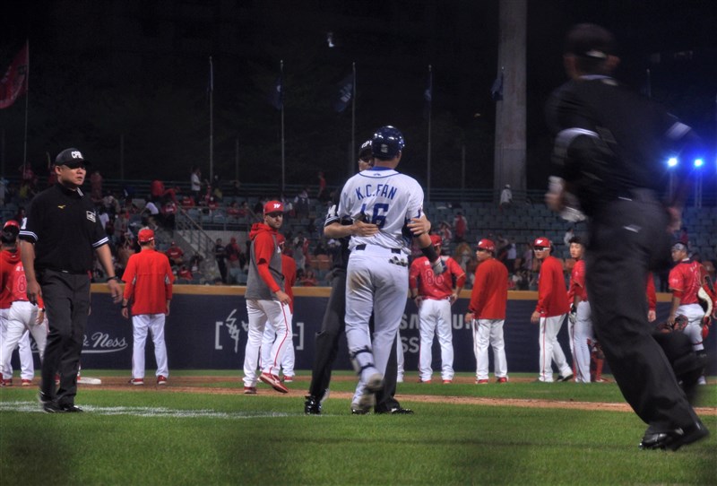 7局下范國宸原先敲出高飛犧牲打,王正棠跑回本壘後,被龍隊促請裁決遭三壘審尤志欽改判出局,但王正棠從重播角度顯示並未有明顯提前離壘,范國宸直說:「真的滿誇張的。」