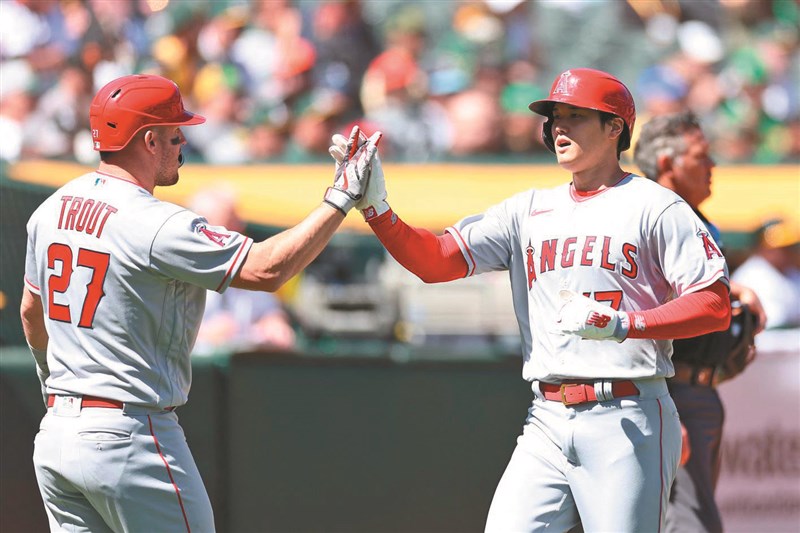 大谷先前在世界棒球經典賽跟楚奧特的對決,被譽為當今最強球員過招,球季開打後回天使當隊友,2日對奧克蘭運動家隊之戰,兩人本季首轟同場出爐。