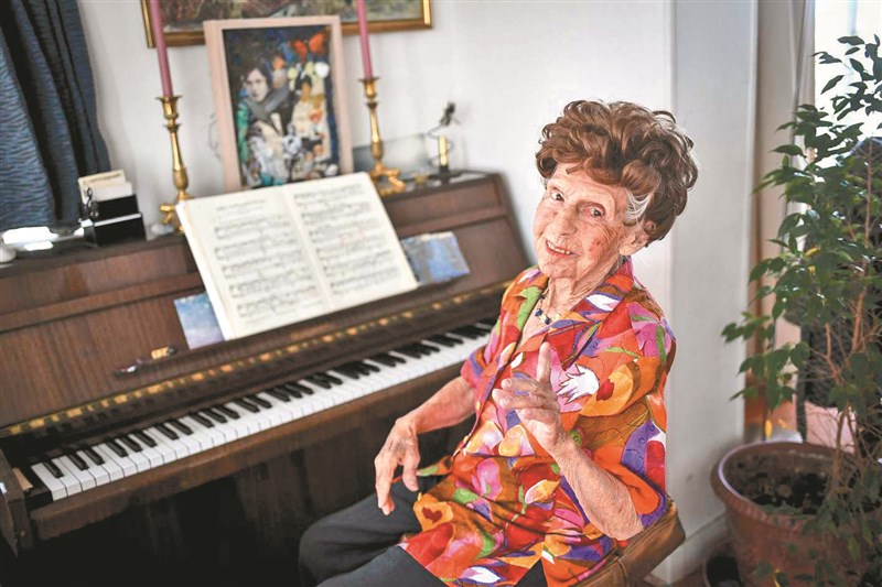 【本報綜合外電報導】法國鋼琴家柯列特.馬茲(Colette Maze)生於一九一四年六月,已經彈鋼琴超過一世紀,且持續在社群媒體上吸引數以千計樂迷。她即將在夏季前發行第七張專輯「彈琴一百零八載」(108 Years of Piano),裡面收錄了著名作曲家蓋希文(Gershwin)、 皮亞佐拉(Piazzolla)、舒曼(Schumann)和德布西(Claude Debussy)的作品。