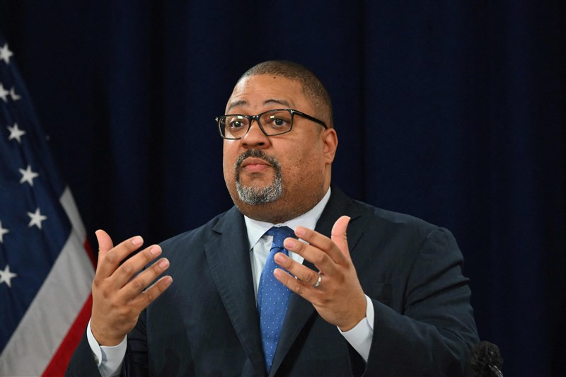 起訴川普的紐約曼哈頓地方檢察官白艾榮在川普出庭後召開記者會。圖/法新社