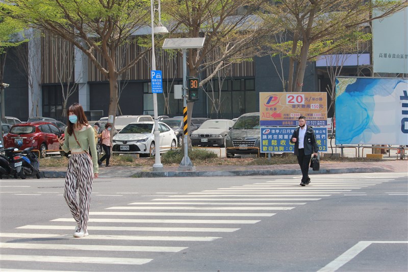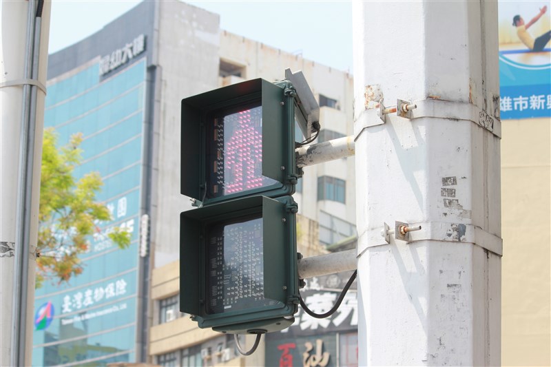 高雄市友善行人環境,規畫在人車流大的路口增設行人號誌,並利用太陽能供電力及傳輸倒數秒數資訊。圖/高雄市交通局提供