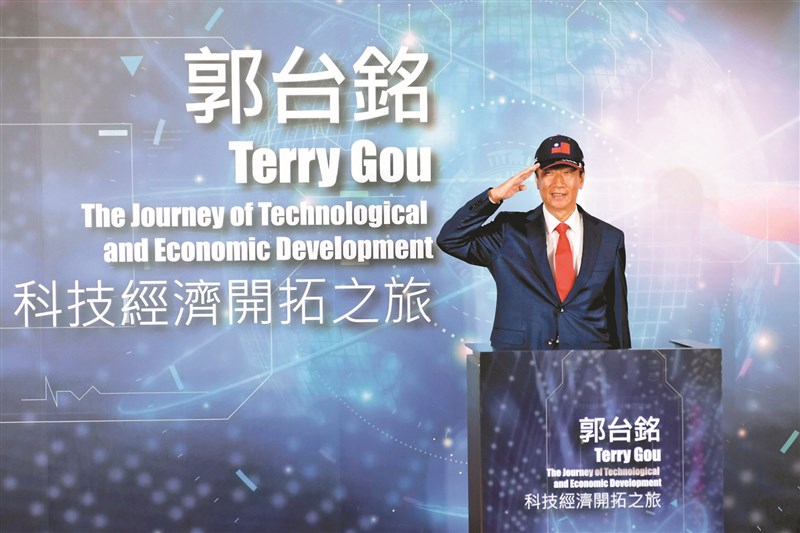 鴻海集團創辦人郭台銘昨清晨搭機返台,在「科技經濟開拓之旅」返台記者會上宣布,將爭取國民黨提名,參選總統。圖/中央社