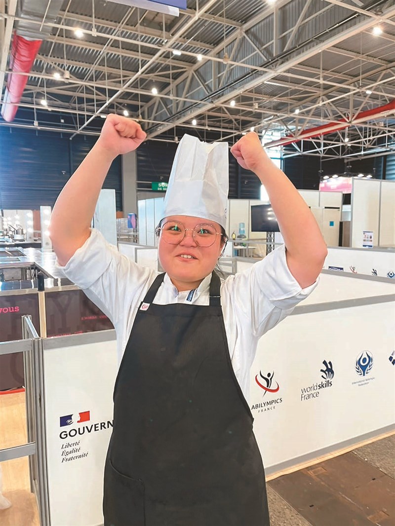 沈方惠左手天生有障礙,苦練五年備賽,獲西餐烹飪職類金牌。圖╱新北市