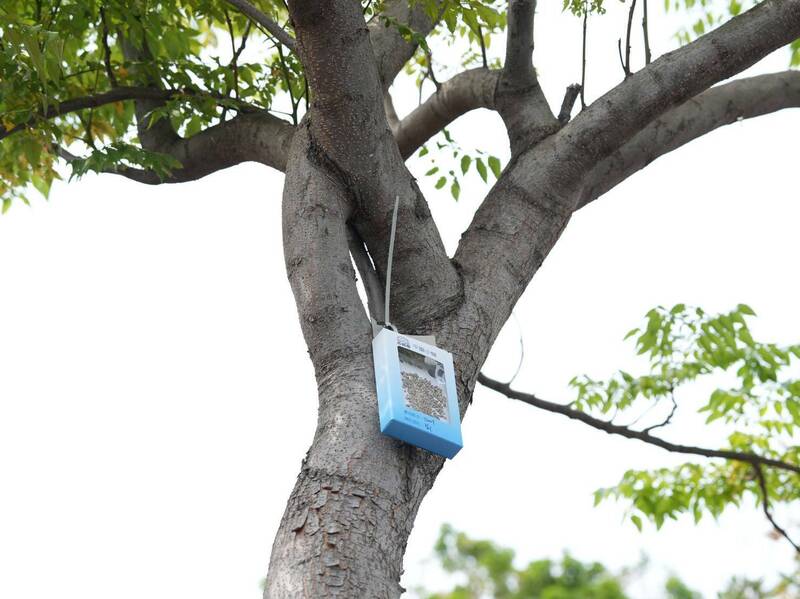 南投集集鎮防治荔枝椿象,今年在鎮上八張街公共區域施放平腹小蜂,要避免行道樹成為害蟲溫床。圖/集集鎮公所提供